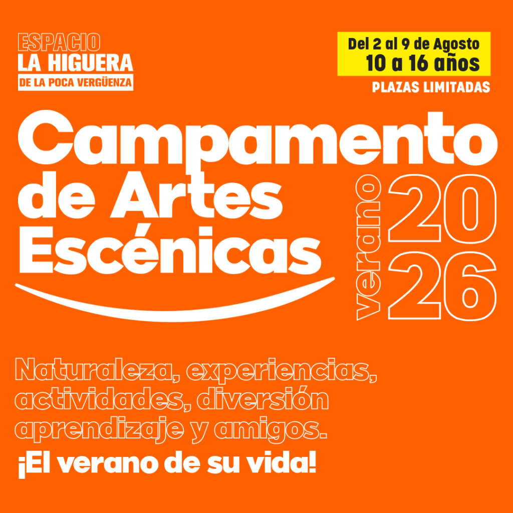 Campamento organizado por La Higuera de la Poca Vergüenza, este campamento está diseñado para jóvenes de 10 a 16 años que quieran sumergirse en el mundo de las artes escénicas mientras disfrutan de la naturaleza y nuevas experiencias. Del 2 al 9 de agosto de 2026, en el Campamento de Fontés en Castalla (Alicante), los participantes tendrán la oportunidad de realizar actividades multiaventura, clases de teatro, danza, música, artes plásticas, grabar un videoclip y mucho más. ¡Un verano lleno de magia, amigos y creatividad!