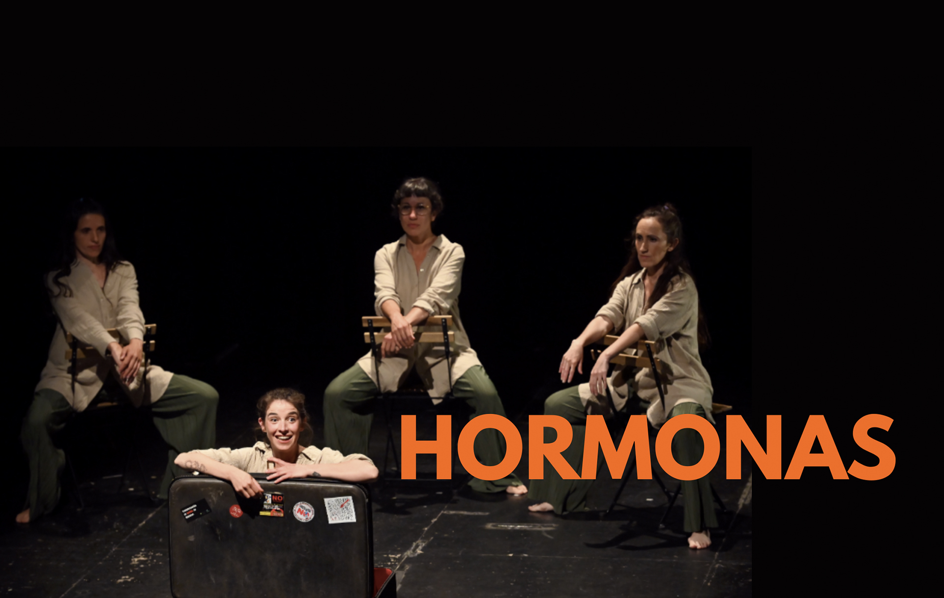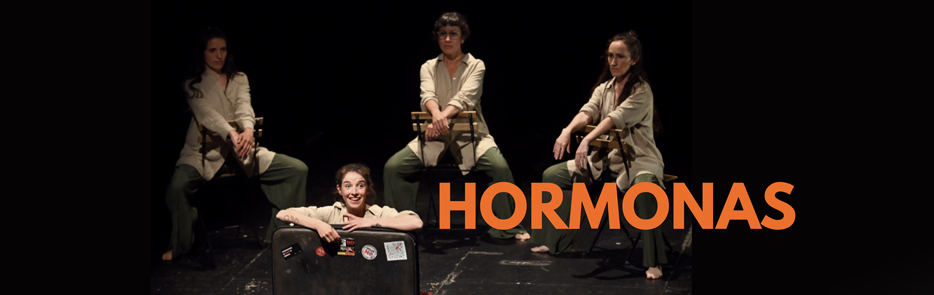 «Hormonas» recorre el ciclo de vida de una mujer, de las mujeres. Desde que nace hasta que muere, como las hormonas van acompañando y transformando. A lo largo de este viaje pasaremos por lugares como estereotipos de género en edades tempranas, diversidad sexual, contenidos de canciones cosificando a mujeres, bullyng escolar, llegada de la menstruación, amor romántico, abuso de las redes sociales, violencia obstétrica, presión social a las mujeres que deciden no ser madres, presión social hacia la forma de crianza y educación escogida, violencia de género mortal, síntomas y tabúes en la menopausia, la soledad de las mujeres en la vejez, depresión geriátrica, hasta la vejez en las residencias para la 3ª edad. El medio de transporte de este viaje es el teatro y la música, el cuerpo expresivo, el movimiento poético, la manipulación de objetos y las caricaturas de personajes.
